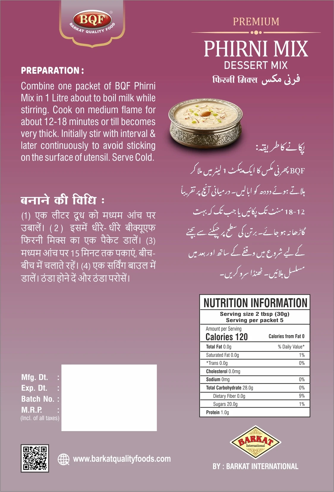 BQF Kheer Phirni Mix, 155 g