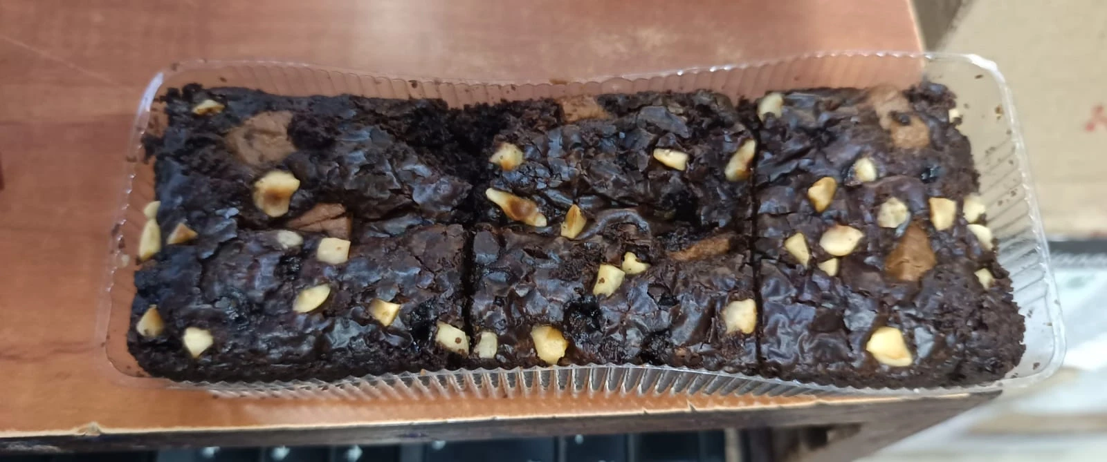 A classic rich and moist brownie with dark chocolate chips, perfect for an intense chocolate experience.