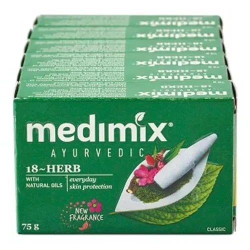 Medimix Ayurvedic Soap Contains an exclusive blend of the purest and premium grade vegetable glycerine and the time tested Ayurvedic formulation of Lakshadi oil. Successfully moisturizes dry skin making it soft and supple, and helps decrease itches and cracks caused by dryness.