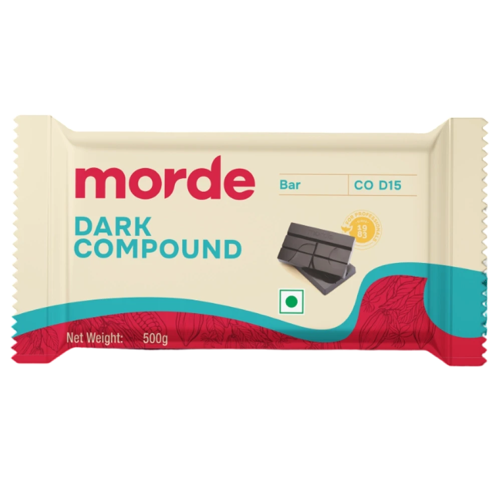 Morde Dark Compound Chocolate (CO D15) is a dark compound from Morde that contains cocoa solids and sugar. It is a lower cost alternative for couverture. It can be applied in Moulding, Enrobing, Coating, and Inclusion. Dark compounds are used in Assorted Chocolates, Ganache, Desserts, Garnish, Doughnuts, Biscuits etc.
