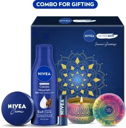 NIVEA Combo with Body Lotion, Lip Balm, Face Moisturizer Cream, Candle for Men & Women (4 Items in the set)