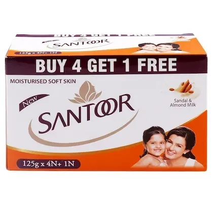Santoor Sandal & Almond Milk Soap 125 g (Buy 4 Get 1 Free)