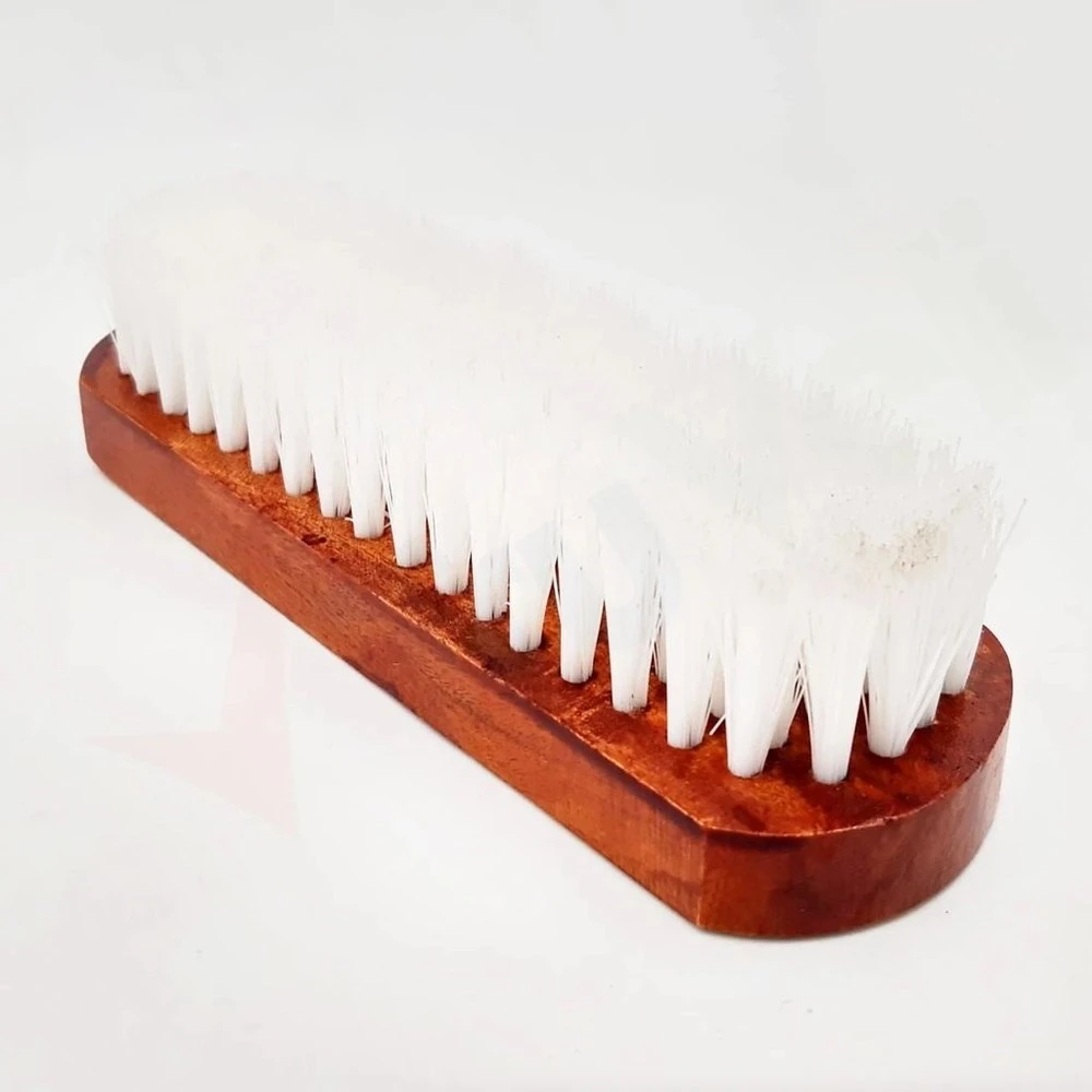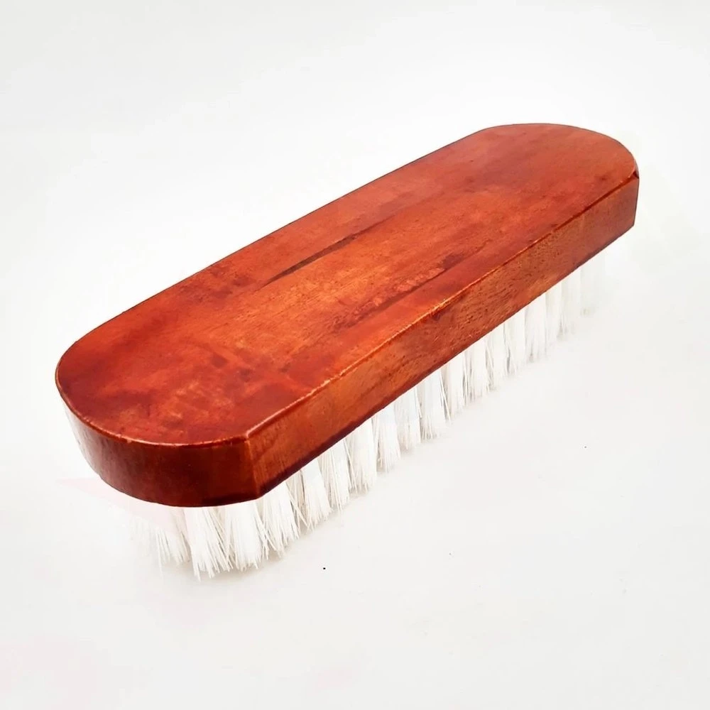 A wooden clothes brush is a type of brush used for cleaning and maintaining clothing made of wool, cashmere, or other delicate fabrics. The brush is made of natural or synthetic bristles, and its wooden handle is ergonomically designed for comfortable use.